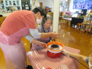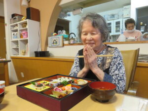 認知症高齢者グループホーム 〒520-0046 滋賀県大津市長等2丁目1-19 スタッフブログ ホーム スタッフブログ お誕生日会(陽ユニット) 2025年9月27日 楽日荘スタッフ 1F 陽 9月は、3名のご利用者様のお誕生日月でした。 これからもお元気で、素敵な一年にしていきましょう。 敬老会 (陽ユニット) 2025年9月27日 楽日荘スタッフ 1F 陽 今年も楽日荘 敬老祝賀会を行いました。 よし笛コンサートや記念品贈呈 美味しいお弁当、紅白饅頭 盛りだくさんな敬老会でした。 敬老祝賀会パート⑵ 2025年9月13日 楽日荘スタッフ 2F 風 食事も後に、よし笛コンサート、獅子舞、プレゼント渡し おやつに紅白饅頭頂き、皆さん喜ばれ楽しんでおられました。 また、来年も、皆さんとお祝いできますよーに(^o^) コマコマより🐻 敬老祝賀会 2025年9月13日 楽日荘スタッフ 2F 風 今年も、皆さんと素敵な1日が過ごせました。 美味しく頂きました。 コマコマより🐻 夏祭り part③ (2F 風ユニット) 2025年9月12日 楽日荘スタッフ 2F 風 金魚すくいやボールすくいにスイカ割りと とても楽しんでおられました(≧▽≦) かき氷も美味しく頂きました。 アキ🦎 夏祭り part② (2F 風ユニット) 2025年9月12日 楽日荘スタッフ 2F 風 屋台風のお昼ご飯 ノンアルコールビールで乾杯🍻 いただきます ちょっと量が多いわ~と言われていましたが 皆さん、ぺろりと召し上がっておられました アキ🦎 夏祭り part① (2F 風ユニット) 2025年9月12日 楽日荘スタッフ 2F 風 夏祭り開会宣言 ヨーヨー釣りに挑戦 一回で釣れる人もいれば、何回も挑戦する人も。 皆さん、釣れた時はとびきりの笑顔を見せてくれました アキ🦎 9月壁飾り 2025年9月9日 楽日荘スタッフ 2F 風 今月も、良い作品が出来ました。タイトルは「夕暮れのコスモス」 コマコマより🐻 夏祭り(陽ユニット) 2025年8月29日 楽日荘スタッフ 1F 陽 8月28日 今年も「楽日荘夏なつり」を行いました。 合同でスイカ割り大会!!とっても盛り上がりました!! 陽ユニットでは、 射的、ヨーヨーすくい、スーパーボールすくい、わたあめ チョコバナナなど楽しみました!! お誕生日会(陽ユニット) 2025年8月25日 楽日荘スタッフ 1F 陽 8月17日 お誕生日おめでとうございます☆彡 ケーキとカードのプレゼント(*´▽`*) これからも楽日荘で楽しい思い出を作っていきましょう。 次のページへ 最近の投稿 お誕生日会(陽ユニット) 敬老会 (陽ユニット) 敬老祝賀会パート⑵ 敬老祝賀会 夏祭り part③ (2F 風ユニット) アーカイブ 2025年9月 (8) 2025年8月 (6) 2025年7月 (8) 2025年6月 (9) 2025年5月 (10) 2025年4月 (10) 2025年3月 (4) 2025年2月 (8) 2025年1月 (1) 2024年12月 (8) 2024年11月 (5) 2024年10月 (13) 2024年9月 (9) 2024年8月 (10) 2024年7月 (13) 2024年6月 (10) 2024年5月 (8) 2024年4月 (7) 2024年3月 (11) 2024年2月 (10) 2024年1月 (9) 2023年12月 (10) 2023年11月 (10) 2023年10月 (5) 2023年9月 (21) 2023年8月 (21) 2023年7月 (11) 2023年6月 (14) 2023年5月 (24) 2023年4月 (20) 2023年3月 (24) 2023年2月 (10) 2023年1月 (12) 2022年12月 (5) 2022年11月 (8) 2022年10月 (8) 2022年9月 (5) 2022年8月 (6) 2022年7月 (6) 2022年6月 (6) 2022年5月 (8) 2022年4月 (7) 2022年3月 (5) 2022年2月 (6) 2022年1月 (13) 2021年12月 (3) 2021年11月 (7) 2021年10月 (13) 2021年9月 (10) 2021年8月 (10) 2021年7月 (6) 2021年6月 (7) 2021年5月 (10) 2021年4月 (12) 2021年3月 (10) 2021年2月 (8) 2021年1月 (7) 2020年12月 (3) 2020年11月 (4) 2020年10月 (3) 2020年9月 (11) 2020年8月 (7) 2020年7月 (5) 2020年5月 (8) 2020年4月 (8) 2020年3月 (13) 2020年2月 (7) 2020年1月 (8) 2019年12月 (15) 2019年11月 (9) 2019年10月 (2) 2019年9月 (6) 2019年8月 (4) 2019年7月 (7) 2019年6月 (5) 2019年5月 (11) 2019年4月 (8) 2019年3月 (10) 2019年2月 (6) 2019年1月 (9) 2018年12月 (9) 2018年11月 (7) 2018年10月 (7) 2018年9月 (4) 2018年8月 (8) 2018年7月 (2) 2018年6月 (8) 2018年5月 (8) 2018年4月 (8) 2018年3月 (10) 2018年2月 (6) 2018年1月 (15) 2017年12月 (14) 2017年11月 (12) 2017年10月 (16) 2017年9月 (19) 2017年8月 (19) 2017年7月 (12) 2017年6月 (9) 2017年5月 (16) 2017年4月 (19) 2017年3月 (15) 2017年2月 (8) 2017年1月 (10) 2016年12月 (21) 2016年11月 (15) 2016年10月 (19) 2016年9月 (1) カテゴリー お知らせ (36) ふれあいスペース楽 (7) ボランティア (2) 事務所 (53) 未分類 (25) 看護 (14) 研修 (26) 行事 (8) 1F 陽 (402) 2F 風 (485) メタ情報 ログイン 投稿の RSS コメントの RSS WordPress.org