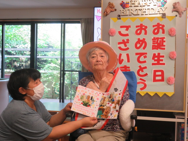 お誕生日会(陽ユニット) 2025年8月25日 楽日荘スタッフ 1F 陽 8月17日 お誕生日おめでとうございます☆彡 ケーキとカードのプレゼント(*´▽`*) これからも楽日荘で楽しい思い出を作っていきましょう。
