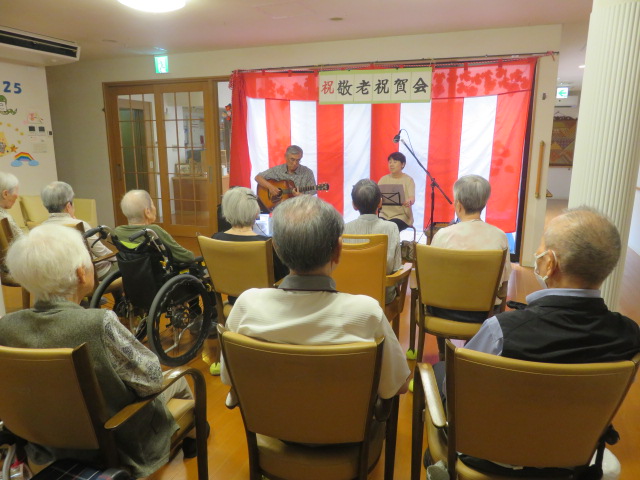 敬老祝賀会パート⑵ 2025年9月13日 楽日荘スタッフ 2F 風 食事も後に、よし笛コンサート、獅子舞、プレゼント渡し おやつに紅白饅頭頂き、皆さん喜ばれ楽しんでおられました。 また、来年も、皆さんとお祝いできますよーに(^o^) コマコマより🐻