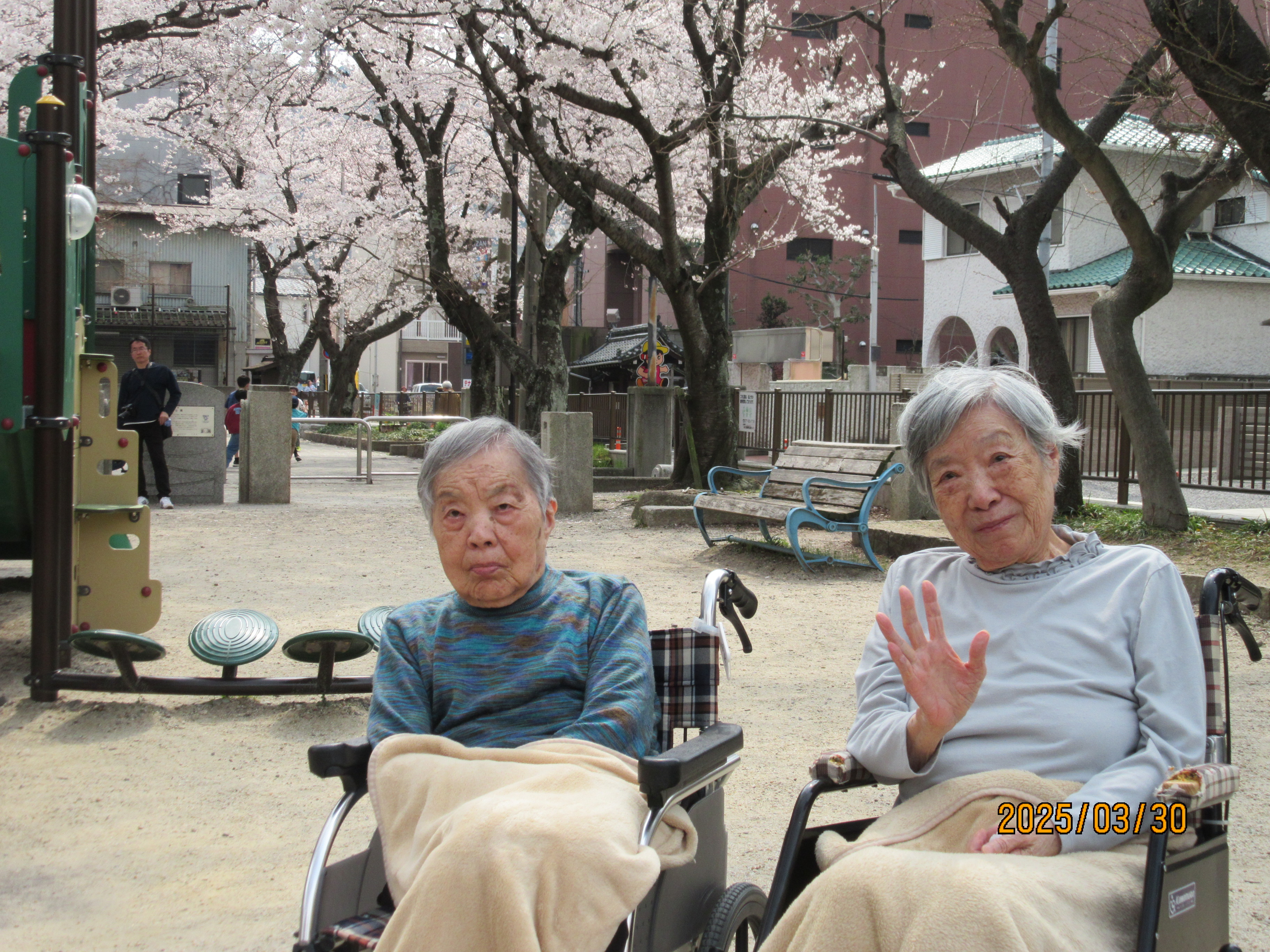 お花見🌸 2026年4月15日 楽日荘スタッフ 2F 風 今年も、お花見に行きました。 天気も良く、皆さんも、喜んでおられました。満開でした🌸 暖かくなれば、散歩など行きたいと思います。 コマコマより🐻