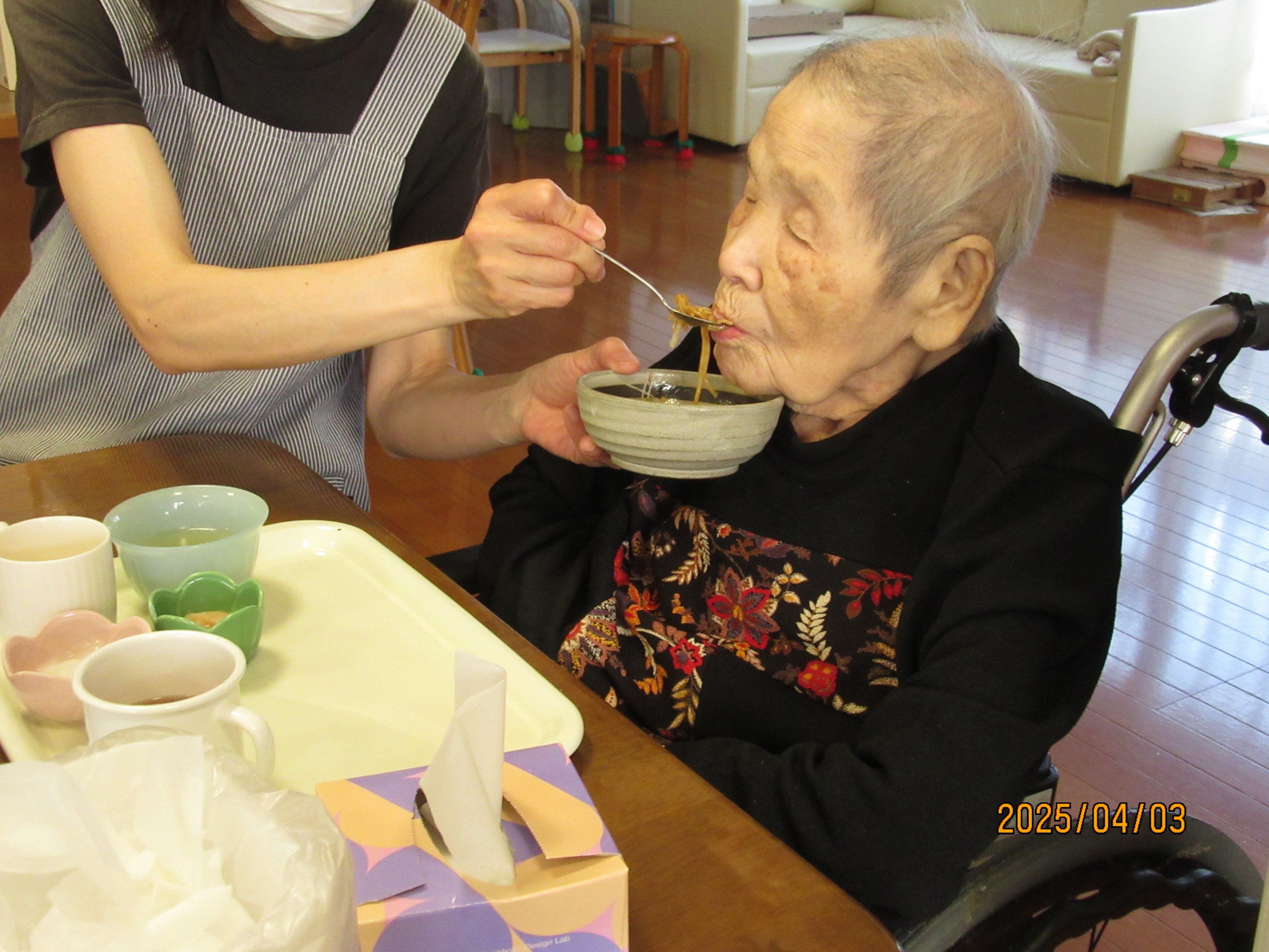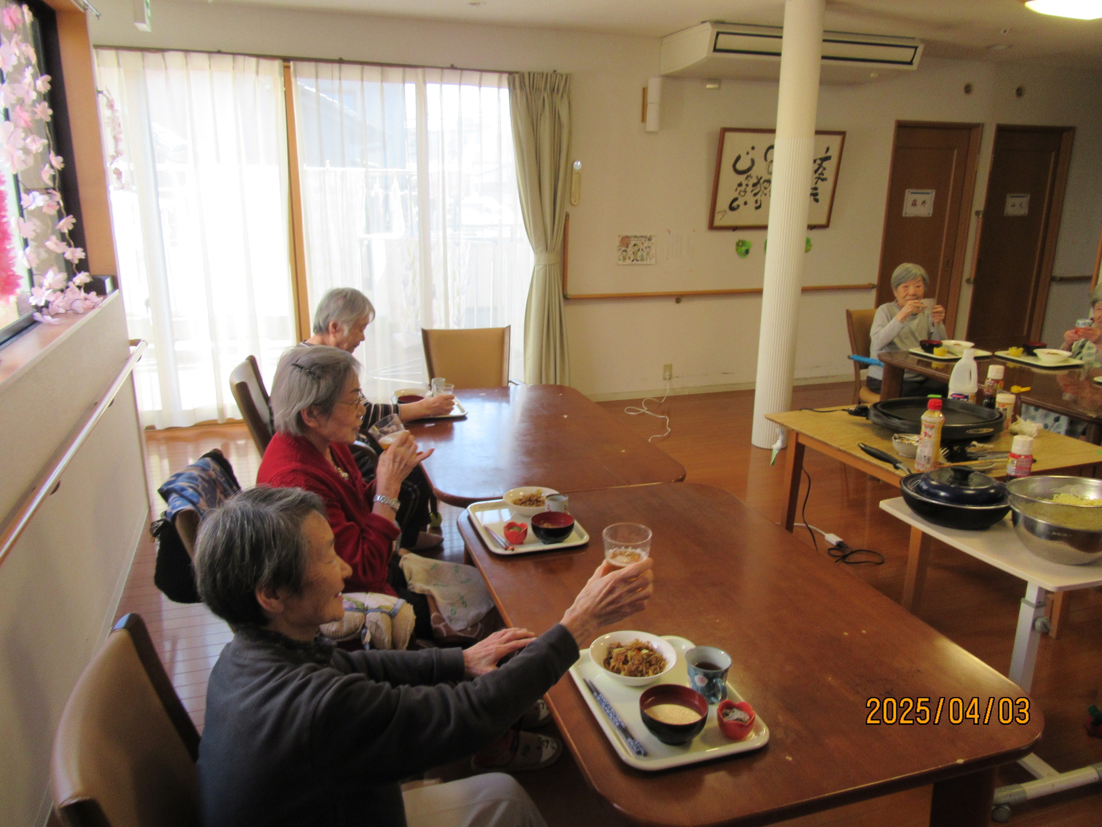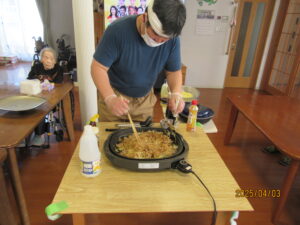 食事レク 2026年4月15日 楽日荘スタッフ 2F 風 先日、皆さんの前で焼きそばを作り食べて頂きました。 おなか一杯食べられ、喜んでおられました。 また、食事レクをしていく予定です。 コマコマより🐻